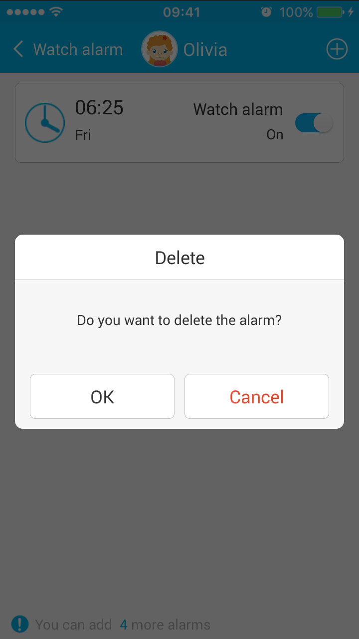 5. To delete alarms, you can long press / swipe the selected alarm to the left depending on your Kiddoo app version.